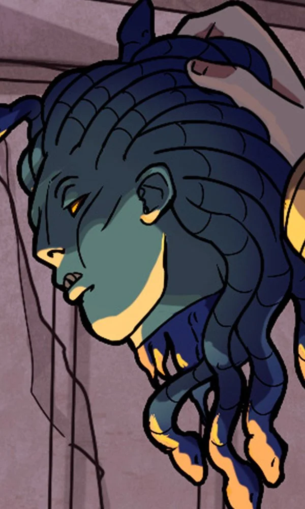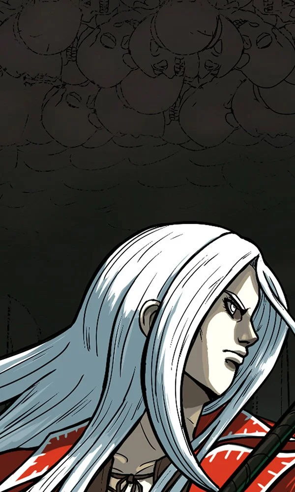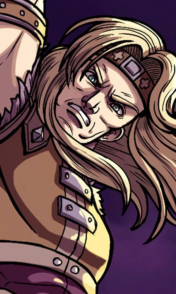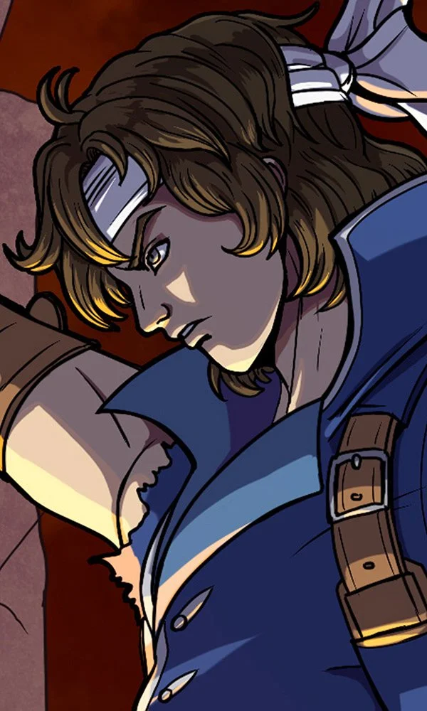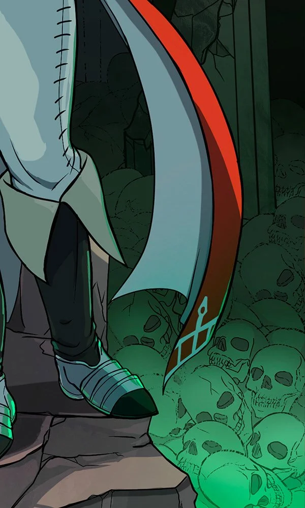 Juste Belmont is from Castlevania: Harmony of Dissonance (my favorite Castlevania game)! The location picked is the Skeleton Caves. It is a desolate, castle dungeon-like area littered with... well, bones! The color palette in this area was originally warmer yellows and greens, but to fit the theme of this project, I shifted the colors to a sickly green.