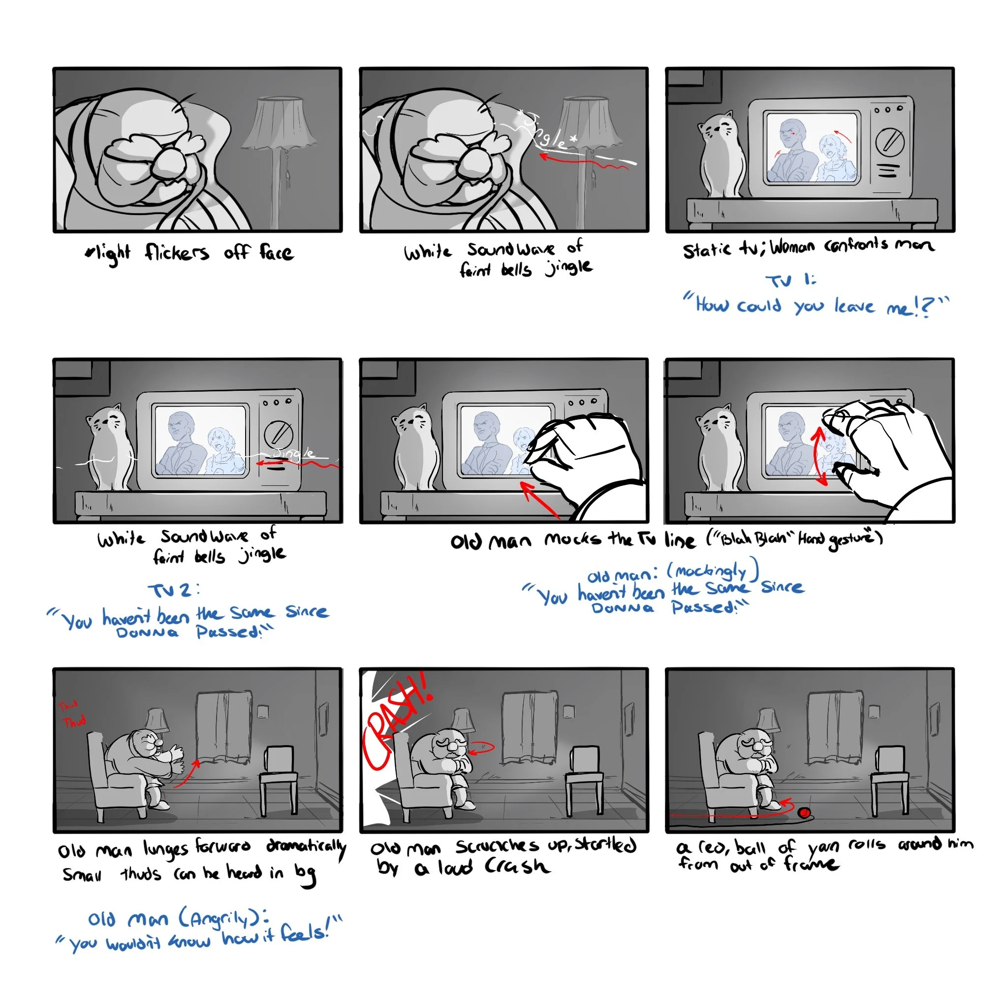 "Jingle" is a short animation done for the 2025 fall semester of Gunner School. The animation portrays a sadden Old Man watching old home videos of his lost cat, Jingle. Upon being visited by the manifested memories of Jingle, he realizes that he needs and has the strength to move on from these dark moments.
