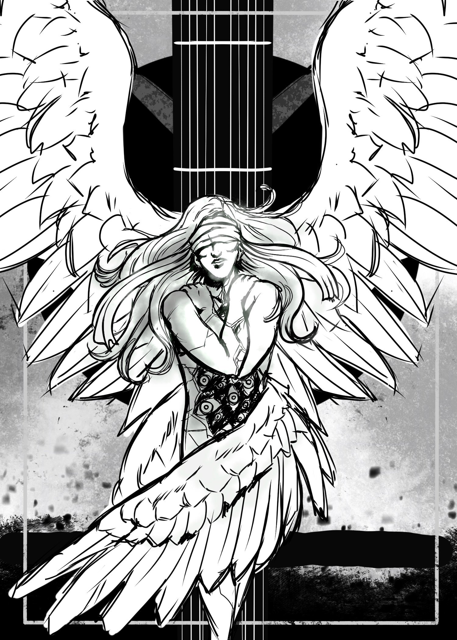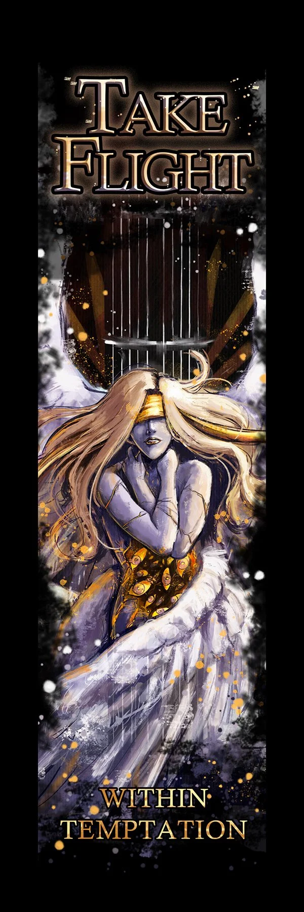 For this project, I was to create an 11 x 17-inch illustration for a gig poster to promote the client’s, Guitar Hero, live “TAKE FLIGHT” event for the band Within Temptation. The illustration must also fit a 3 x 11-inch Banner and 6 x 6-inch CD Album Cover. The Poster must include the date and location of the venue.